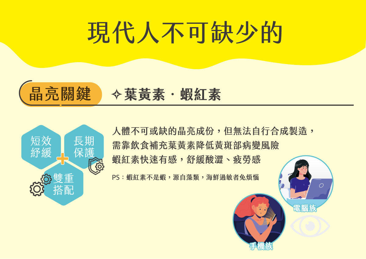 ◎Gold combination formula of lutein, astaxanthin, fiber, and magnesium element