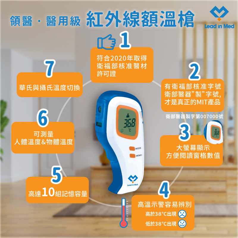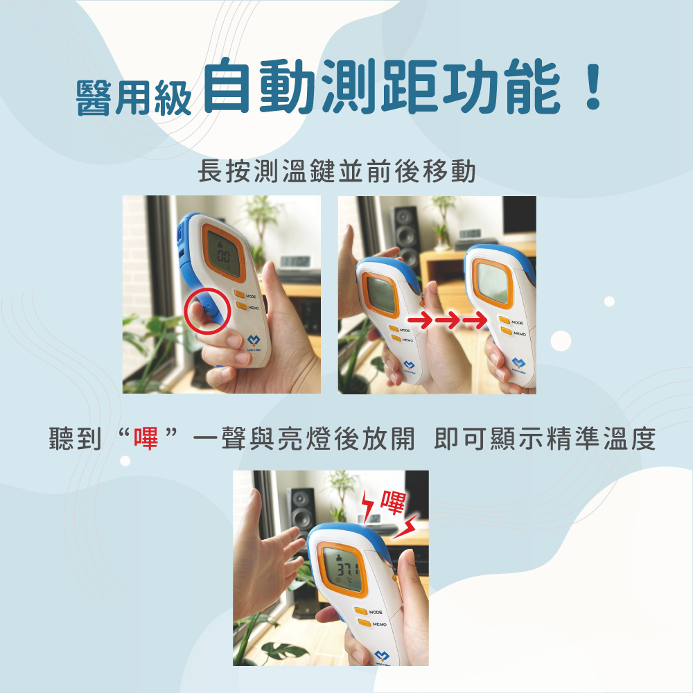 ✅ 領醫額溫槍內建貼心的 自動測距功能,幫助取得更精準的量測距離。