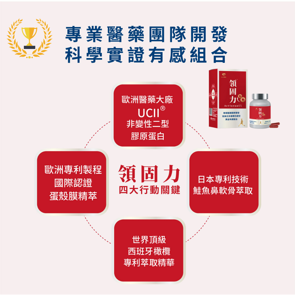 從原料把關、配方科學到製程安全,領固力® 不只是一瓶保健品, 更是許多中高齡族群找回輕鬆行動感的關鍵夥伴。