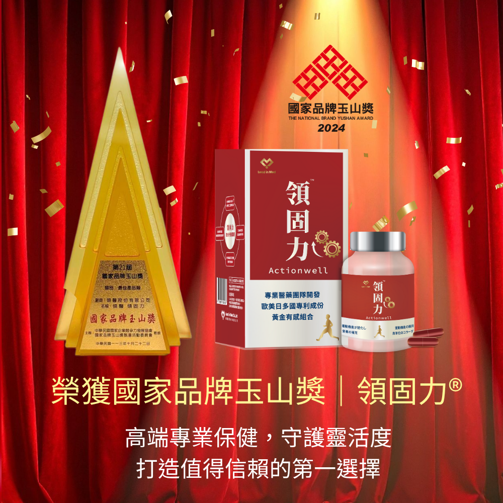 領固力® 是榮獲 國家品牌玉山獎「最佳產品類」 殊榮的保健產品, 結合多國專利成分與醫療級研發標準,成為眾多醫師推薦與消費者信賴的行動靈活補充首選。