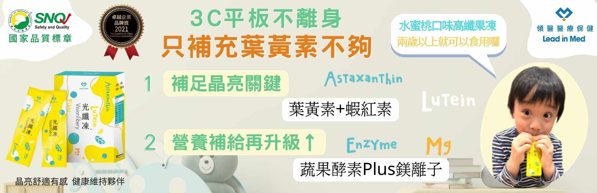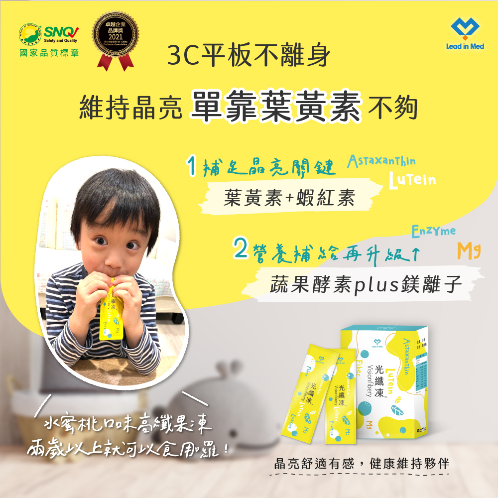 光纖凍® 精選 黃金機能組合,一包即補每日所需重點營養,是長時間3C用眼族、銀髮族與全家人都適合的日常保養果凍。
